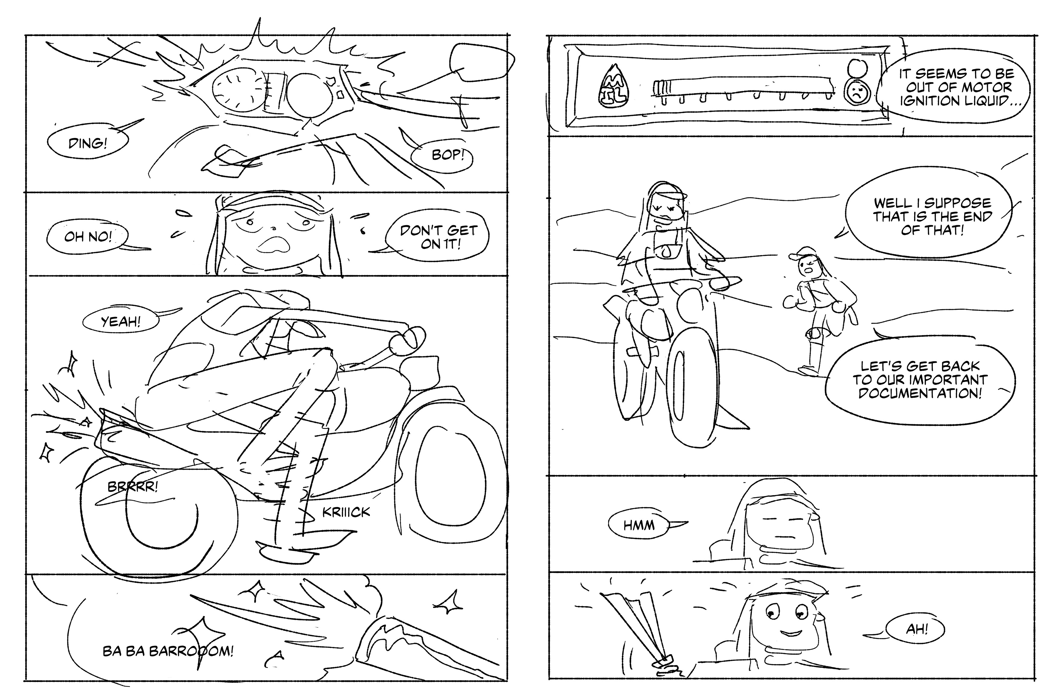 Finished layouts were sent over to Zack to clean while Alex continued working on roughs. Zack drew the clean lines and shadows at a rate of about 4 pages per day.
